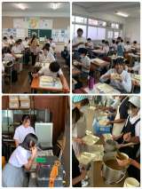 今日から授業、給食が始まりました。 ●1年生 家庭科と音楽 音楽は新しい教室で...