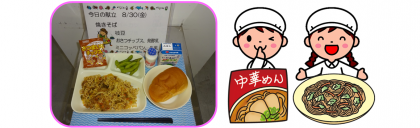 献立名 ・焼きそば ・枝豆 ・おさつチップス ・発酵乳 ...