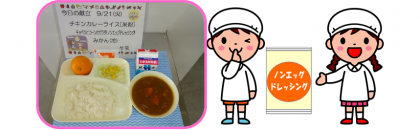 献立名 ・チキンカレーライス[米粉] ・キャベツとコーンのサラダ[ノンエ...
