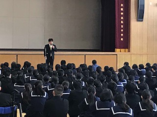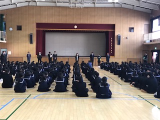 4月8日(月)朝、クラス発表があり、新しいクラスで体育館で始業式を行いました。校長先生のお話、部活動の表彰、教職員の紹介がありました。