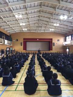 始業式の後、新入生歓迎会を行いました。2・3年生のみなさん、中学校生活に早く慣れるように1年生に教えてあげてください。