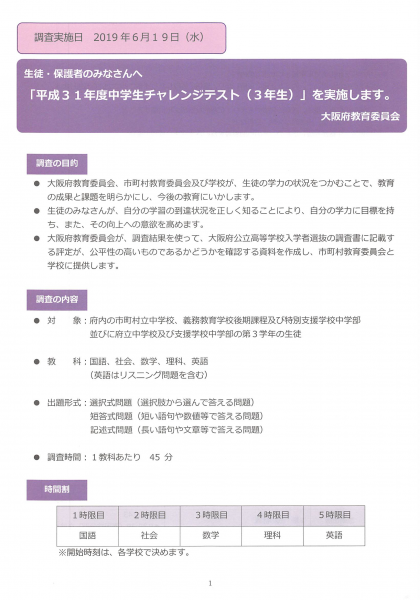 4月17日(水)、3年生の子どもたちに6月に行われますチャレンジテストのリーフレットを配布しました。保護者のみなさま、リーフレットをご覧ください。