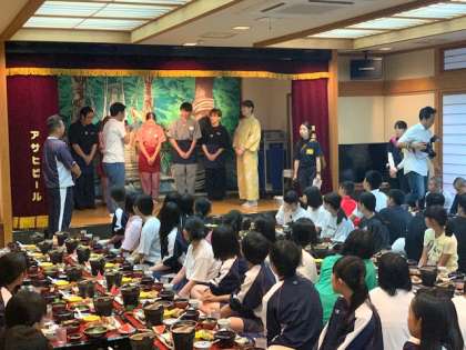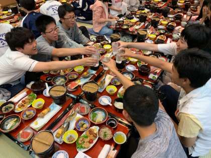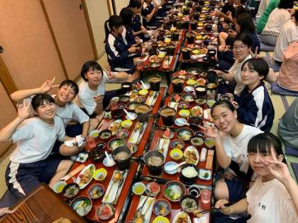 ホテルに到着した子どもたちは待ちに待った夕食です。いただきます!