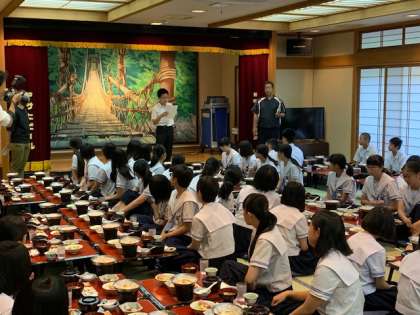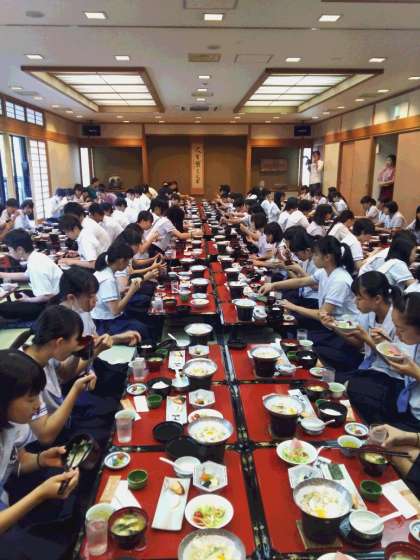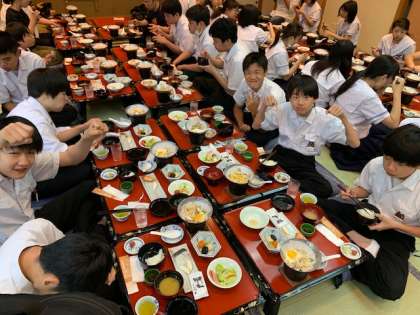 5月25日(土)、いよいよ修学旅行最終日となりました。昨夜の全体レクの余韻も冷めやらぬ間に朝を迎えました。今日のアクティビティに備えてしっかりと朝食をいただきます!