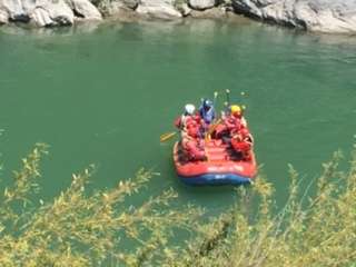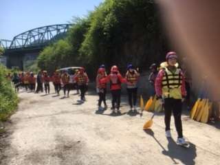 スゥェットスーツ、ライフジャケットに着替え、さあラフティング開始です。