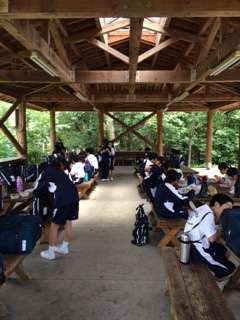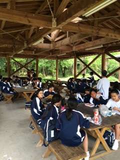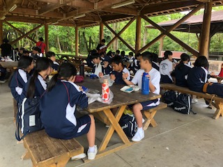 クラスビルディングの午前の取り組みを終えた子どもたちは昼食をとっています。