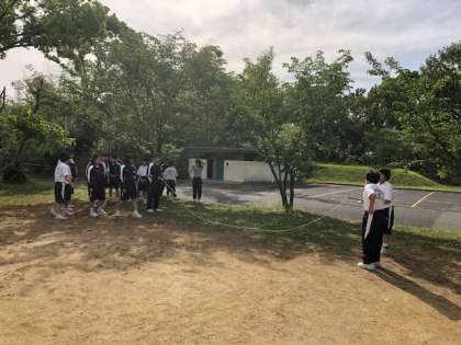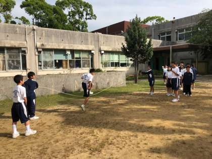 子どもたちはクラスの団結をクラスビルディングで取り組みました。その団結力をフリスピーディスク、大縄跳びで発揮しています。