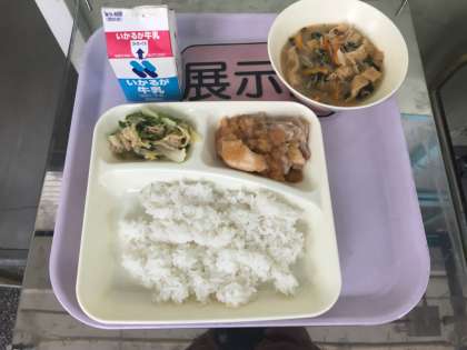 ごはん 牛乳 鶏肉のおろしじょうゆかけ みそ汁 野菜いため