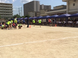 体育大会の盛り上がりが最高潮になる全員リレーです。