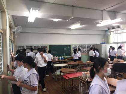 一年生は6時間目の特活の時間に一泊移住の写真を見たり、期末テストの振り返りをしました。