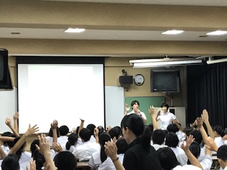 7月5日(金)の6時間目に多目的室で東住吉総合高校の福田利明先生、東住吉高校の安達乃里子先生、石秀伸先生をお招きして3年生の子どもたちへ高校説明会を行っていただきました。長吉中学校からは近い高校ですので、馴染みも深く、子どもたちは真剣にお話を聞いていました。