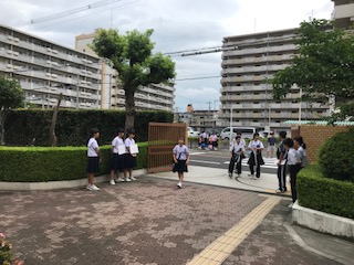 7月1日(月)〜10日(水)、19日(金)に生徒会執行部が中心となって超スーパーあいさつ運動を行っています。「おはよう」のあいさつを交わして笑顔で元気よくみんなを迎えています。