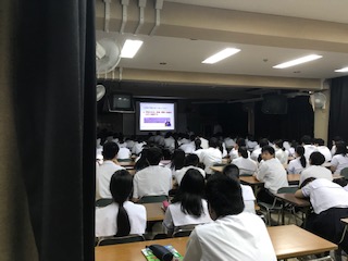 7月11日(木)4時間目に多目的室で3年生は、学校薬剤師の谷 恭志先生をお招きして薬物乱用防止教室を行いました。薬は乱用すれば人体に影響を及ぼすことを学びました。