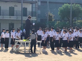 10月7日(月)の朝、全校集会で生徒会役員の認証式を行いました。校長先生からも「みんなが楽しくなる学校」づくりに生徒会役員のみんなと話をしながら考えていこうとお話がありました。後期生徒会役員のみなさん、頑張ってください。