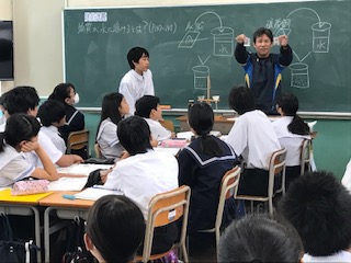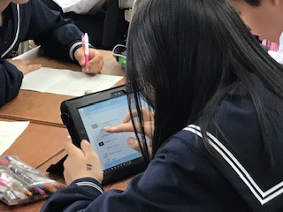 下の写真は3年生と1年生の理科の授業の様子です。3年生はタブレットを用いてテーマについて各班で調べて発表する内容です。1年生は実験の様子です。子どもたちは目を輝かせて取り組んでいます。