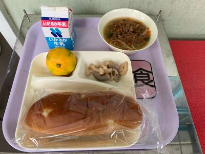 パン 牛乳 タンタンめん れんこんのオイスターソース焼き みかん