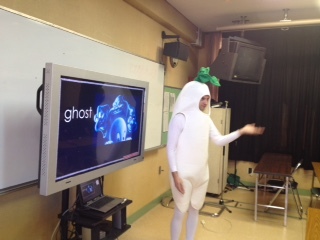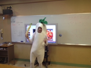 ハロウィンにちなんでNSA-Cのジェイソン先生が仮装(なぜかダイコン)して楽しく授業を行いました。