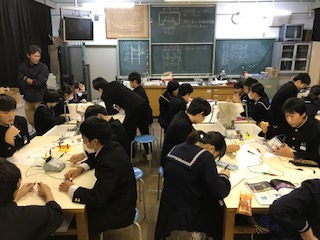 11月12日(火)の5時間目に2年2組は理科の研究授業を行いました。「電圧の規則性」の単元について