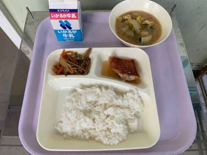ごはん 牛乳 あかうおのしょうゆだれかけ みそ汁 きんぴらごぼう