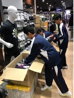 スポーツゼビオ、長吉西デイサービスセンターで職場体験学習を行っている様子です。
