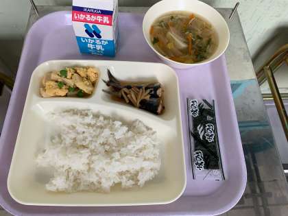 ごはん 牛乳 いわしのしょうが煮 うすくず汁 高野豆腐の卵とじ