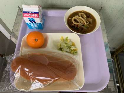 パン 牛乳 カレーうどん はくさいの甘酢あえ みかん いちごジャム
