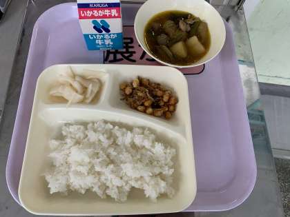 ごはん 牛乳 鶏肉と野菜の煮もの じゃこ豆 かぶのゆず風味