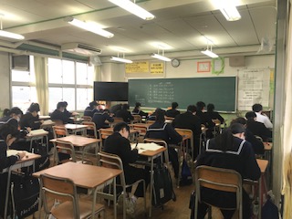 1月9日(木)は3年実力テスト 1・2年チャレンジテスト・チャレンジテストPLUSを行っています。自分の力を最大限に発揮してください。