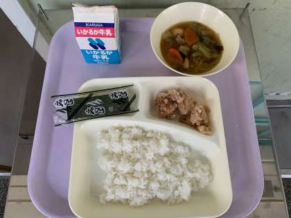 ごはん 牛乳 鶏肉のからあげ まる天と野菜のうま煮 焼きのり
