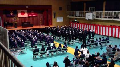 校長先生の式辞、在校生送辞、卒業生答辞、卒業の歌と式は時間短縮して滞りなく進行しました。