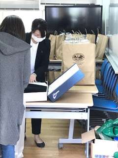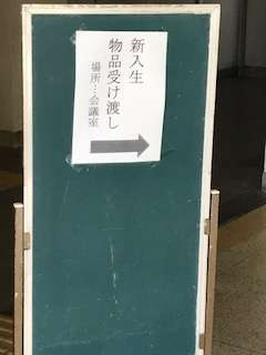 3月21日(土)午前11時〜午後0時の間、新入生の学用品・制服の引き渡しを会議室で行っています。