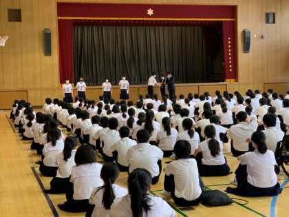 始業式の後、令和2年度前期生徒会役員の認証式、新入生歓迎会を行いました。