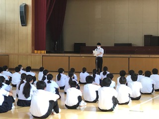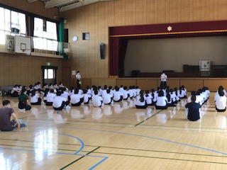 6月16日(火)の放課後、1年生は体育館で部活動紹介を行いました。上級生からそれぞれのクラブの特徴について説明がありました。17日から19日にかけて部活動の仮入部を行います。