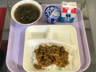 和風カレー丼 もずくとオクラのとろり汁 ヨーグルト 牛乳です。