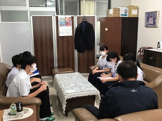 6月18日(木)の放課後、校長室で校長先生と生徒会役員の子どもたちが長吉中学校をよりよくしていくために話し合いを行いました。心づくりの活動について何をしていくかを話し合いました。