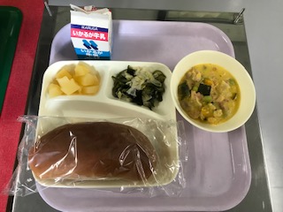 かぼちゃのクリームシチュー ミックス海そうのサラダ りんご(カット缶)