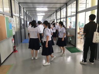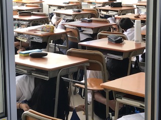 7月2日(木)の7時間目、3年生は地震を想定した避難訓練を行いました。プレハブの仮設校舎で本当の地震では相当に揺れを感じるはずです。迅速に避難するため子どもたちは訓練をしました。