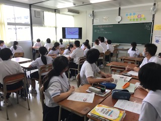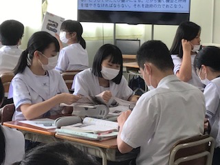 7月3日(金)の5時間目、3年2組で中野剛志先生による研究授業が行われました。「世界恐慌と協調外交の行きづまり」について子どもたちは学びました。