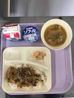 牛丼 とうがんのみそ汁 大福豆の煮もの ヨーグルト 牛乳