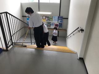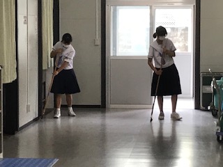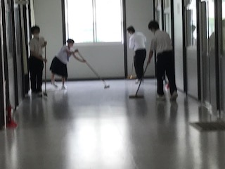 7月10日(金)、期末テスト終了後、生徒会主催のクリーンアップ活動を行いました。今日はあいにくの雨のため、校内の清掃活動を行いました。クリーンアップ活動に生徒会、生徒議会のメンバーに野球部の子どもたちも参加して、廊下・階段の掃き掃除、窓をふく作業の3つのグループに分かれて校内をきれいにしてくれました。