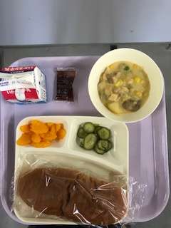 コーンクリームシチュー きゅうりのバジル風味サラダ みかん(缶)