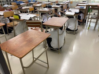9月4日(金)午前9時30分、大阪880万人訓練を行いました。授業中ではありましたが、緊急放送を受けて子どもたちは身を守る行動をとりました。