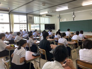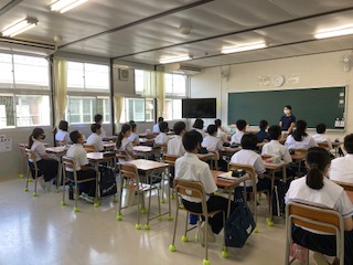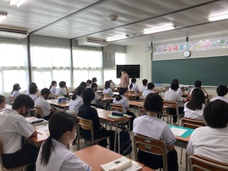 「3年生はいよいよ待ちに待った修学旅行が今週の水曜日から始まります。人の記憶に残る思い出は良い思い出は6割、普通の思い出は3割、悪い思い出は1割残ると言われています。この修学旅行では良い思い出になるようにみんなのことを考えて良い思い出が残る修学旅行にしてください。1・2年生のみなさんはスポーツデイ、文化発表会と行事があります。この行事を見通しを持って臨み、学級のみんなと力を合わせて実行して良い思い出をつくってください。