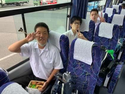 高坂SAで子どもたちは昼食を食べています。