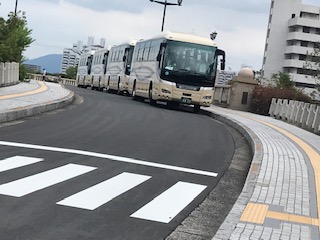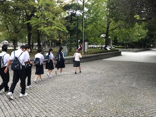 午後1時35分、広島平和記念公園に到着しました。予定を少し変更して、先に資料館の見学からおこないます。公園内の様子です。