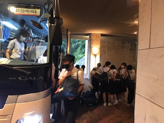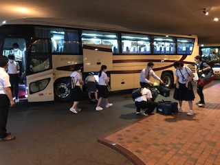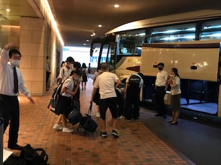 安芸グランドホテル到着後、バスから荷物をおろし、いったん各自の部屋に入室したところです。