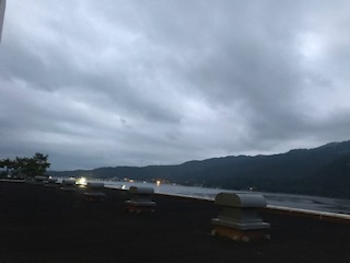 ホテルの窓から見えるのは、厳島神社のある安芸の宮島です。薄暗くてわかりにくいですが、奥の島が、「宮島」です。明日、船で宮島に行く予定です。今、生徒たちは、各部屋でゆっくりくつろいでいます。廊下にも声が聞こえてくるくらい楽しそうな話し声(笑い声)がいたるところで・・・。今日宿泊のホテルは、一般客も泊まられているので、声の大きさには気をつけてほしい、そう思うところです。