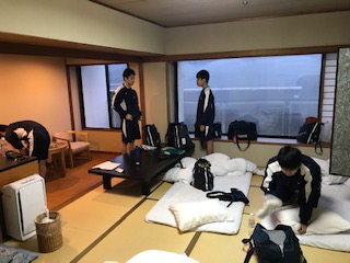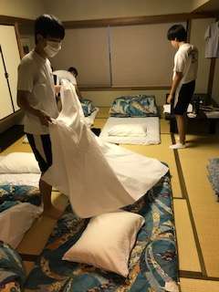 洗面等を済ませ、体操服に更衣し、朝食前のゆっくりとした時間を過ごしています。なかには、率先して部屋の後片付けや布団の整理をしてくれる人もいて、朝からホッとさせてもらえる場面を見ることができます。昨日のスポーツの結果が気になり、テレビでニュース番組を見ている人もいます。