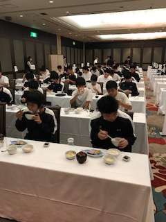 修学旅行2日目の朝食の時間です。しっかり朝ごはんを食べて、今日も一日、元気に活動できるようにしてもらいたいです。