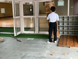 昨日からの雨が続き、10月9日(金)は長吉スポーツデイが13日(火)に延期となりました。午前7時の段階で延期のお知らせを学校ホームページ、保護者送信メールにてお伝えしましたが、一縷の望みをかけて一部の1年生の子どもたちが中学校へ集まり、先生と一緒に清掃活動をしてくれました。この気持ちが届いて13日(火)に長吉スポーツデイが行われますように!
